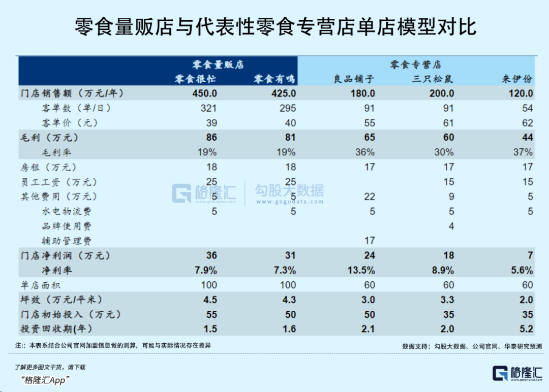 以赵一鸣零食为例,加盟筹备总费用介于60-80万元之间,包含3.8万元加盟费、7-10万设备费,此外再叠加进货费、管理费等其他费用,其投资回报周期大多在18-24个月。而传统零食门店投资回本周期通常为24个月以上。