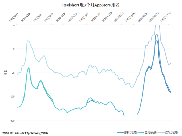 与此同时,中文在线旗下ReelShort却带着似曾相识的霸总剧、复仇剧、赘婿剧出海欧美,在苹果APPstore下载排行榜上击败Tik Tok,夺得10月下载榜冠军,并且直接带动母公司中文在线(300364.SZ)股价暴涨。