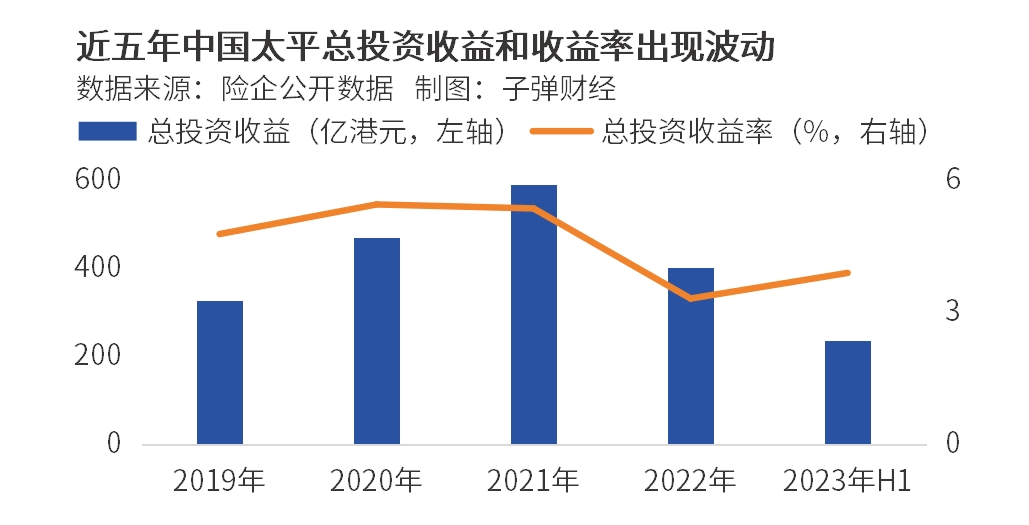 回顾近五年表现,中国太平总投资收益在2021年摸高至近600亿港元,但2022年出现明显下滑。2023年,中国太平实现总投资收益237.05亿港元,在低基数上同比增长105.9%。