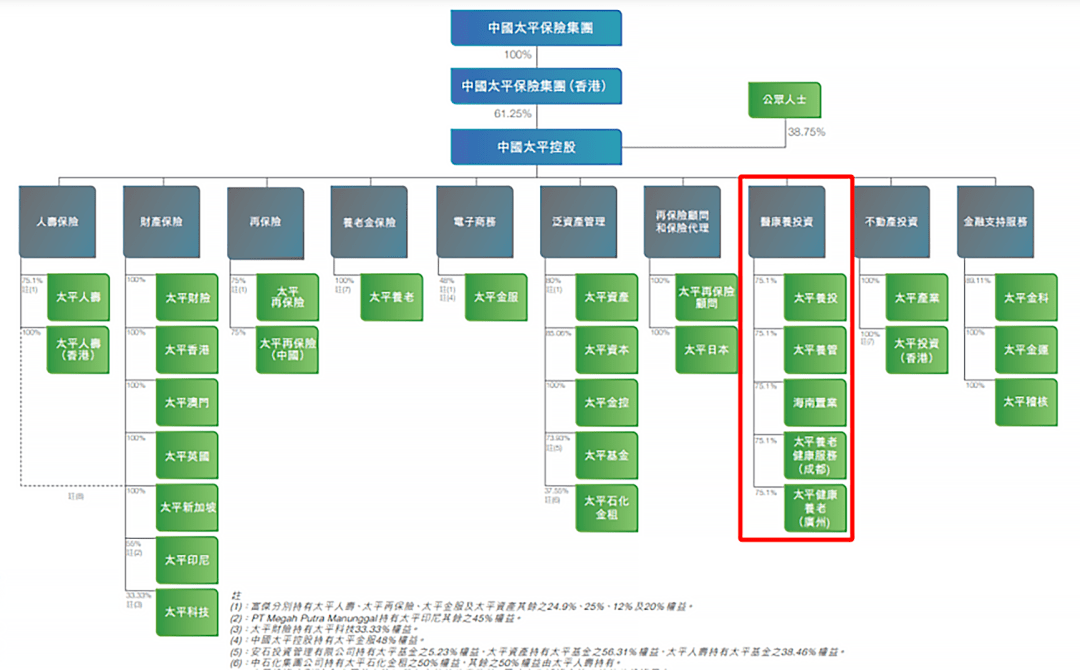在财报中,太平披露的公司架构显示,“医康养投资”成为独立的板块,下设太平养投、太平养管、海南置业等子板块。但该板块的整体投资、运营费用等,太平在2022年财报中没有具体单项披露。