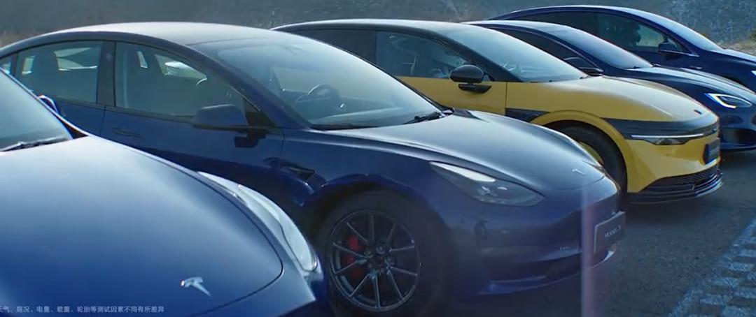 极氪的宣传视频,展示了极氪007与特斯拉全系车型的加速比赛,并策划了“一台车PK特斯拉全系”的话题。