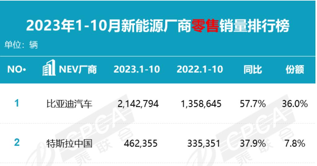 来自改款和众多新品引领的更广范围性价比提升,使得比亚迪收获了比特斯拉更高的增长。乘联会数据显示,2023年1-10月,比亚迪以57.7%的增速,力压37.9%增速的特斯拉。