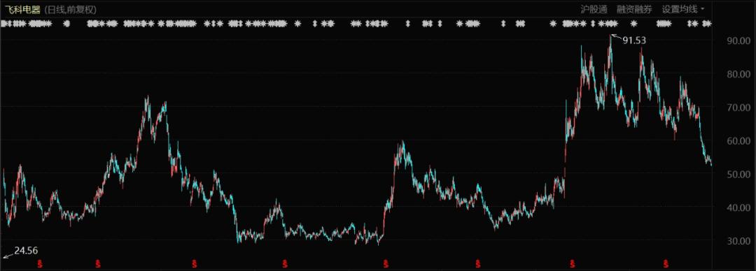 但到了今年11月22日,飞科电器收盘价格为52.18元。时过7年,股价不涨反跌。