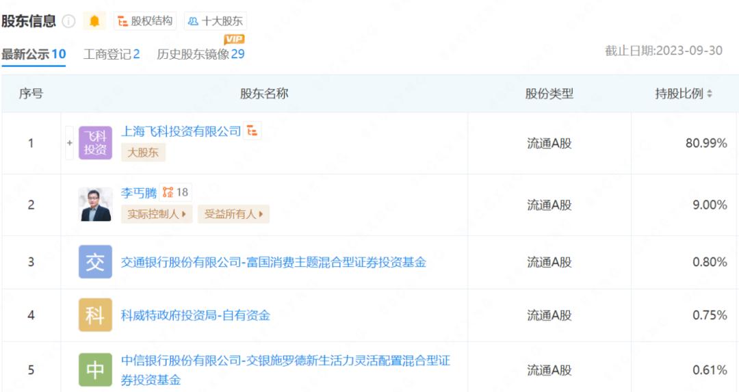 根据企查查数据显示,飞科集团的十大股东中,上海飞科投资有限公司持股占比80.99%,李丐腾本人持股9%。而李丐腾同时又对上海飞科投资有限公司98%持股,这样算下下来。李丐腾直接间接持股飞科电器88%以上的股权。