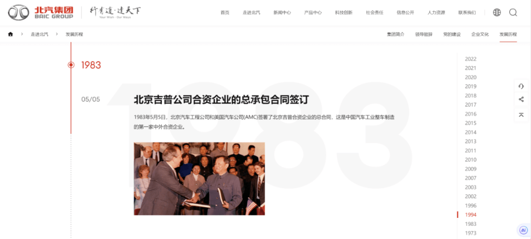 1983年,作为改革开放的先锋队,北京汽车制造厂和美国第四大汽车厂AMC(美国汽车公司)共同组建了中国第一家合营车企——北汽吉普,开启了中外合资办厂的先例。而彼时的上汽还正处于和大众的谈判阶段。
