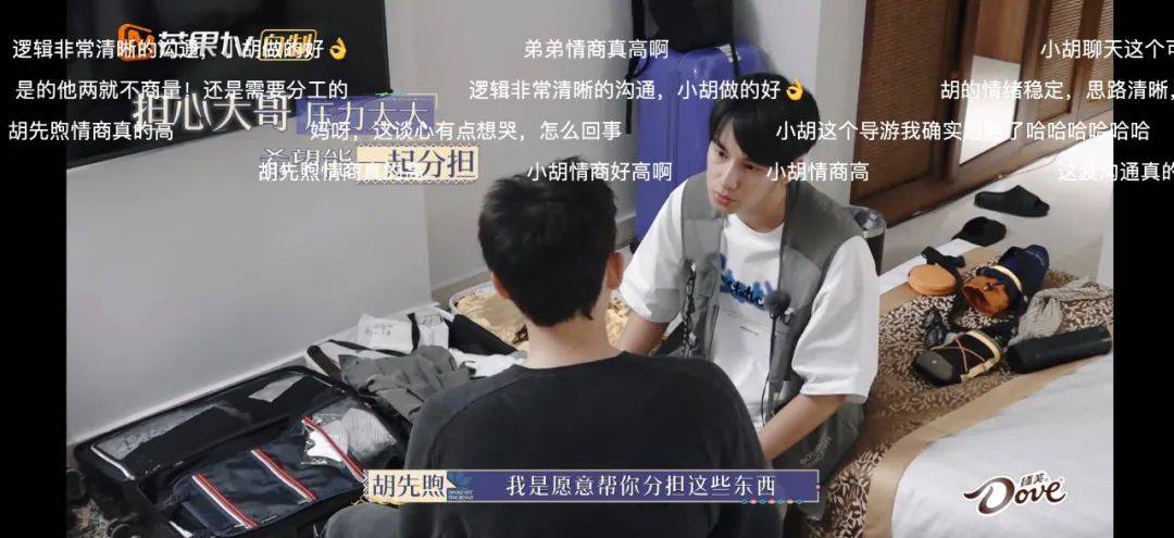 王安宇与胡先煦,两男导游“勾心斗角”,是《花少5》前期最接近老花学的冲突话题。岂料,看了正片观众才恍然,这两男的是遇事就解决,安宇发现了问题就及时找小胡沟通、小胡则情理兼备耐心开导,这段“胡先煦安慰队友免费情商课”建议大家拉片观看至少3遍以上。