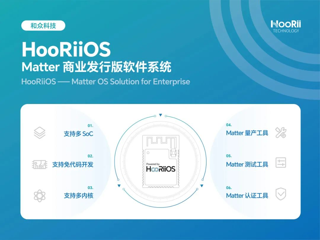 HooRii Technology 是结构性物联网趋势所孕育的商用物联网发行版软件系统提供商,借助 Matter 智能家居标准在全球推广的的趋势,快速实现技术商业化。