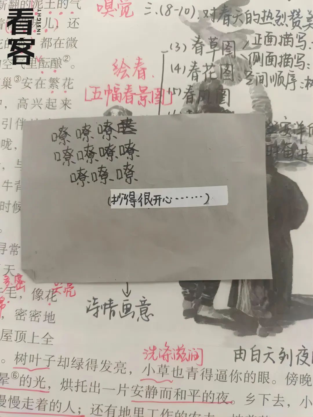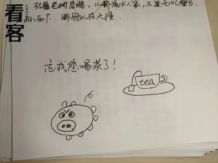 花妹收上来的作业本上,学生用涂鸦的方式给她留言