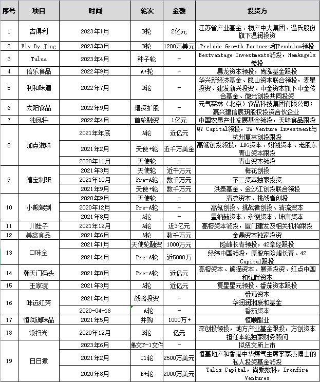 2020年以来的20余起复合调味品行业融资事件(根据公开信息不完全统计)