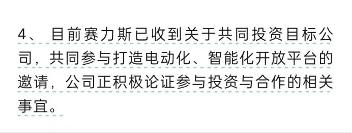 对此,26日晚间,赛力斯在公告中也及时提到,已经收到对新公司投资、合作的邀约。