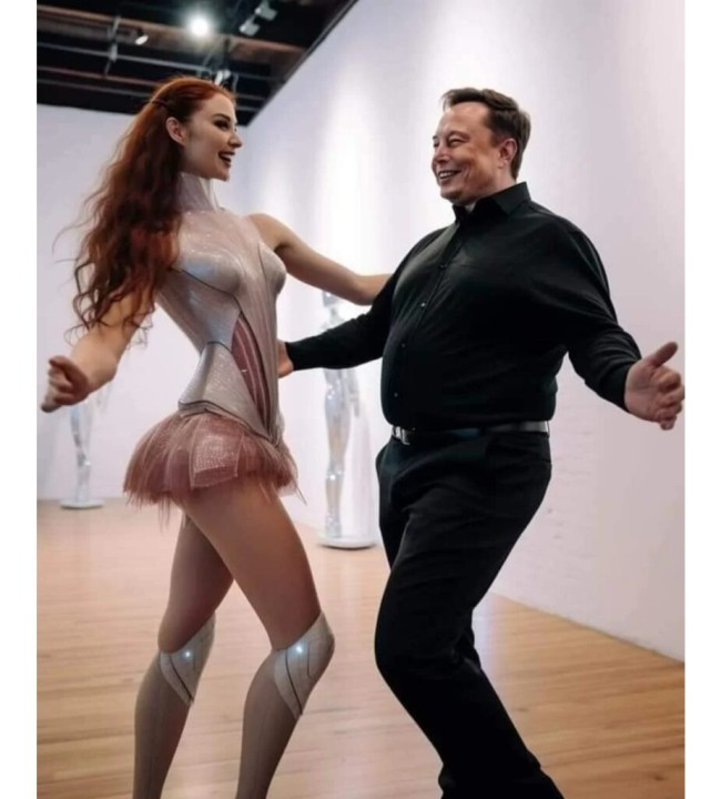 (AIGC输出的马斯克与机器人“女伴”共舞,来源:网络)