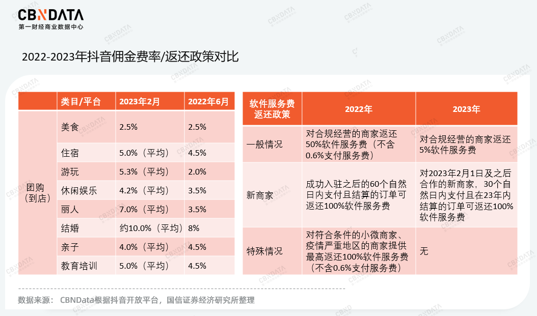 随着各大平台跨界入局本地生活,抖音平台的价格和流量逐渐被拉齐。早期试水时,抖音本地生活给与商家大量流量补贴,并且不收取服务费。到了2022年,抖音开始尝试提高佣金,并减少返佣补贴幅度,这些都增加了商家的运营成本。不过从商家入驻和用户数量上看,虽然抖音本地生活已经进入“转型期”,但目前仍然属于增量市场。