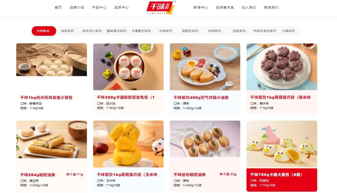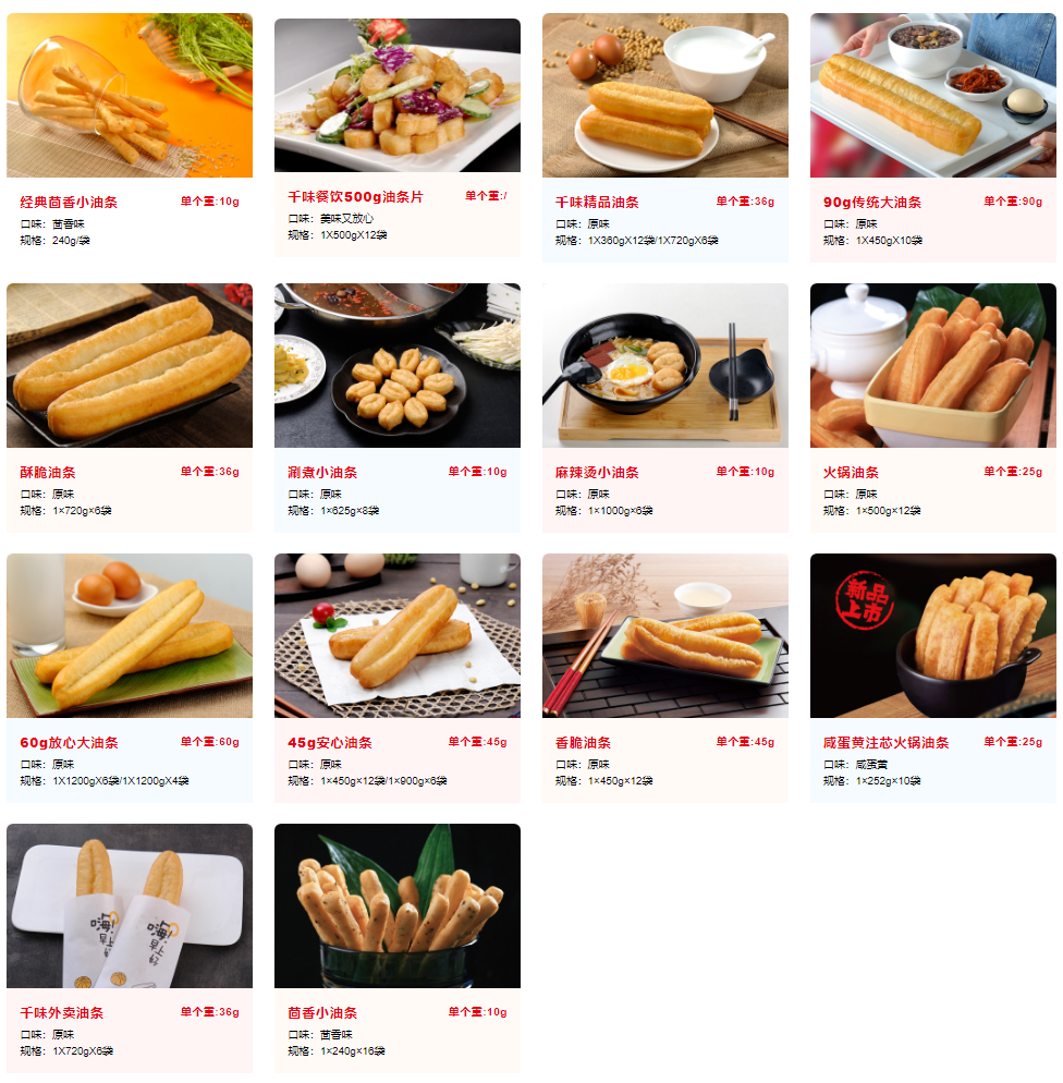图:千味央厨油条系列产品 官网截图