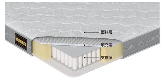 总体来看,床垫一般由面料层、填充层和支撑层三部分构成: