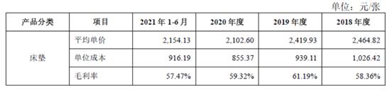 值得注意的是,慕思招股书所披露的产品单价与成本数据也曾引致市场讨论——单位成本916.19元的床垫,转手就翻倍卖到了2154.13元(均价),公司整体毛利率比同行业可比企业平均值(32.16%)高出10%不止。