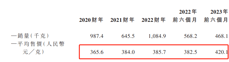 数据显示,2020财年至2023年上半年,集海资源黄金平均售价为365.6元/克、384.0元/克、385.7元/克、420.1元/克,平均售价与国内黄金价格波动一致。