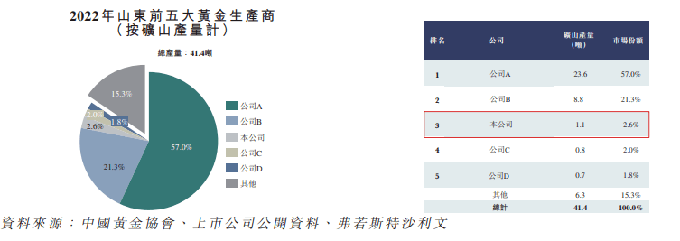 目前,集海资源两家金矿均位于山东省。根据弗若斯特沙利文的报告,山东是我国最大的黄金生产省,按黄金产量而言,2022年集海资源是山东省第三大黄金开采商。