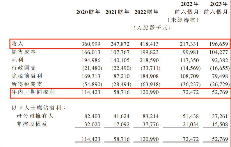 数据显示,2020财年至2023年上半年,集海资源收入分别为3.61亿元、2.48亿元、4.18亿元、1.97亿元。同期,净利润分别为1.14亿元、5871.6万元、1.21亿元、5276.9万元。