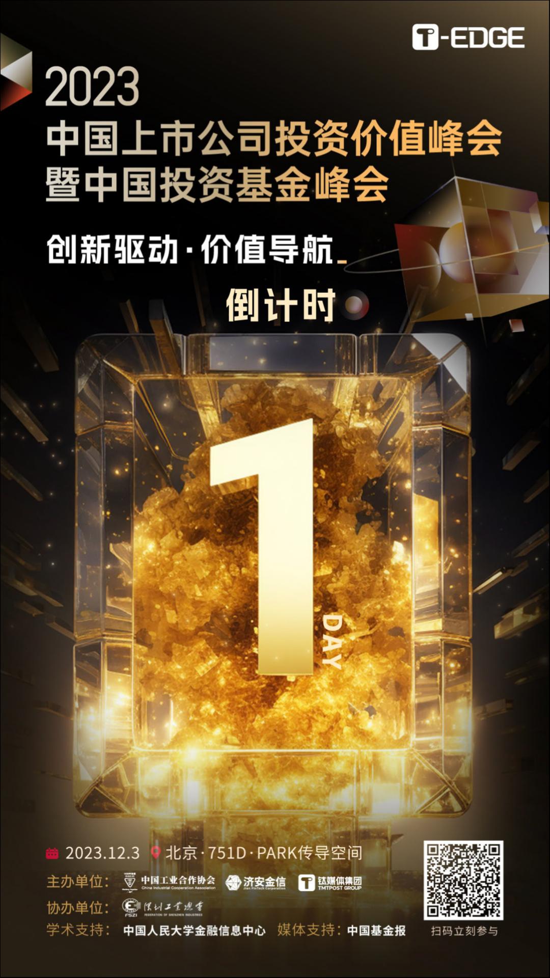 中国上市公司投资价值峰会暨中国投资基金峰会,作为钛媒体2023T-EDGE全球创新大会的主题峰会之一,于 2023年12月3日于北京751D PARK 传导空间举办!