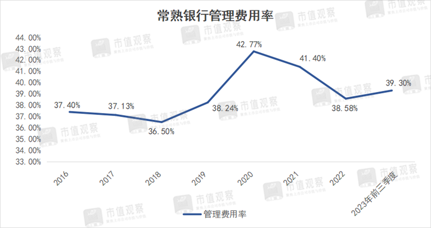 以2023年前三季度为例,常熟银行的管理费用为29.48亿,费用率达39.3%,明显高于沪农商行28.35%和渝农商行的31.06%。