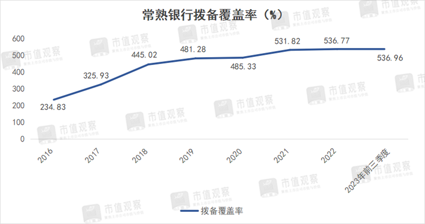 例如反映银行业家底的拨备覆盖率指标,呈现出连年上涨的态势。2017年为325.93%,到了2023年前三季度就增长到了536.96%,在全部42家上市银行中排在第3位。