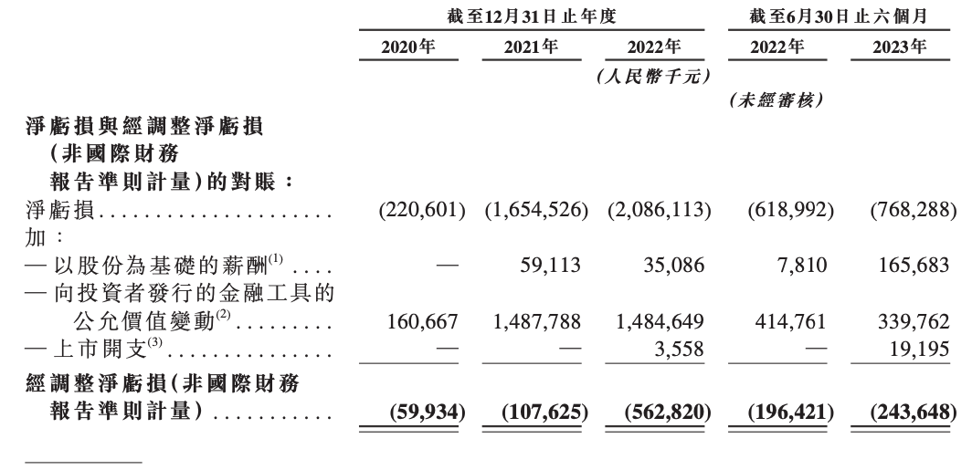 报告期内,速腾聚创一直处于亏损状态,且未有改善。2020-2022年,公司年内亏损为2.21亿、16.55亿、20.86亿元,三年累计亏损约39.62亿元;经调整净亏损(非国际财务报告准则计量)则为5993.4万、1.08亿、5.63亿元。