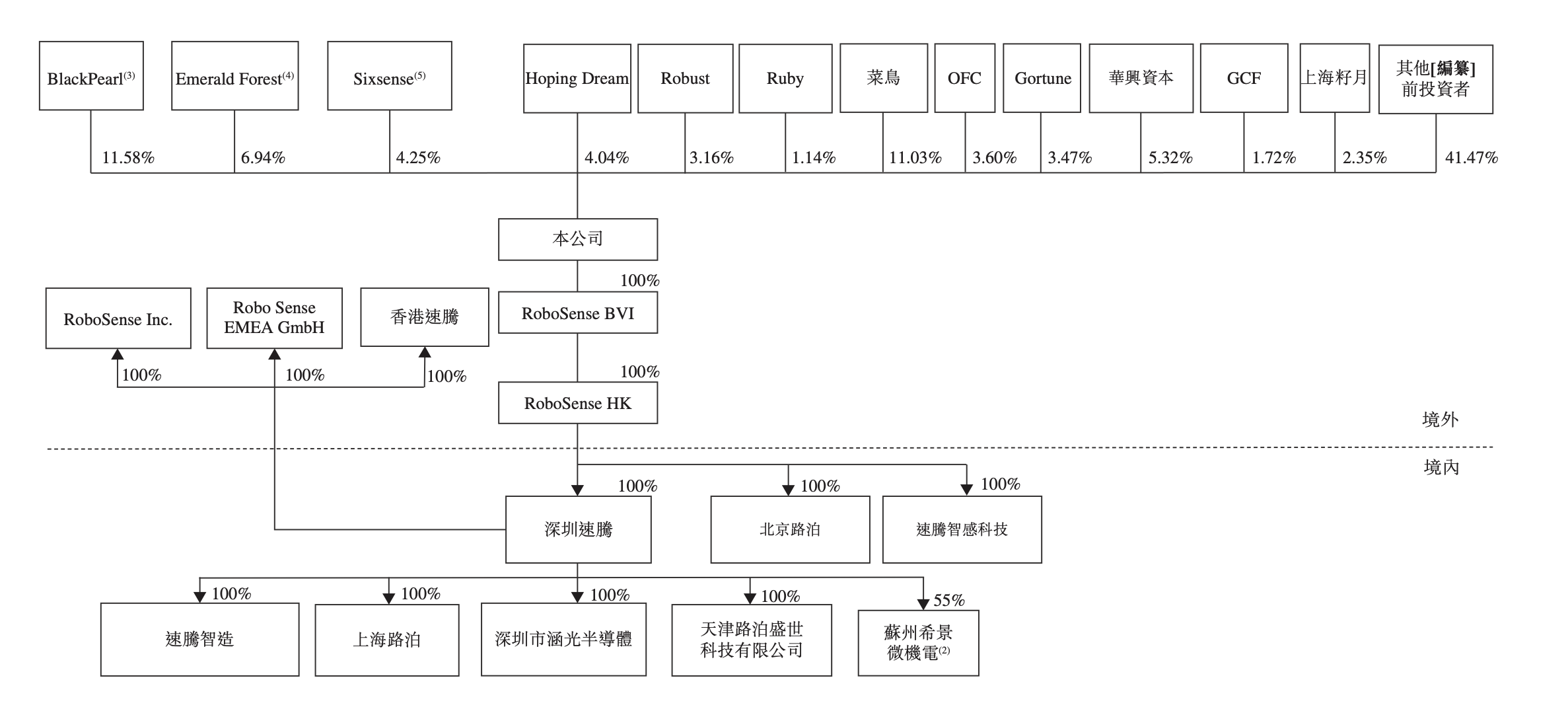 此外,菜鸟持股11.03%,系速腾聚创最大机构股东;华兴资本持股5.32%;早期投资者东方富海通过OFC持股3.6%;湖北小米长江产业投资基金持股2.35%;吉利持股1.72%;北京汽车合计持股1.72%。