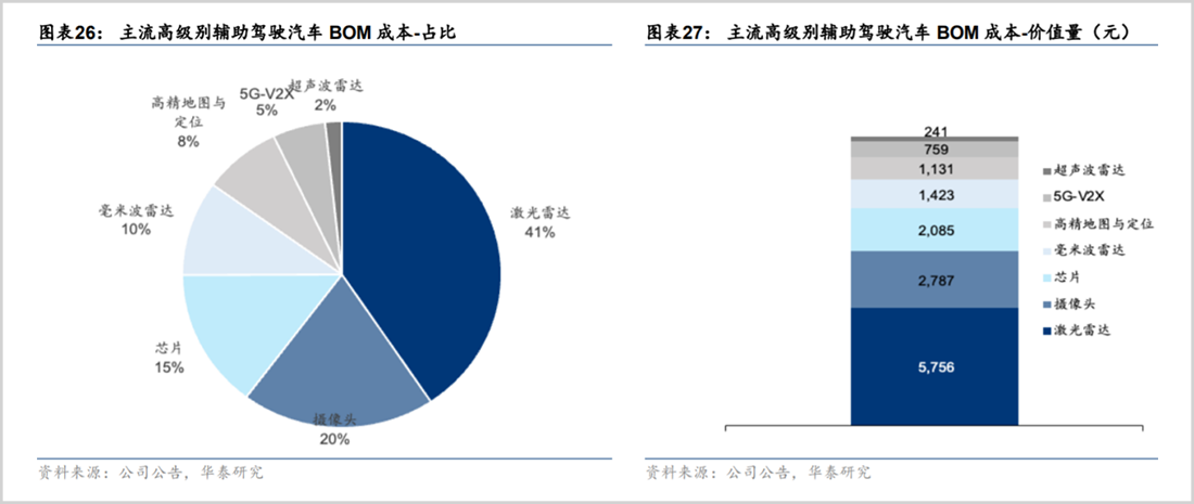 真正能在性能上能与激光雷达一战的是毫米波雷达。毫米波雷达穿透性强,受到恶劣天气影响较小,探测距离能超过150米,与低波长激光雷达相当。再加上较快的反应时间,和较低的成本,性价比也就凸显了出来。据华泰证券,主流高级别智能汽车的毫米波雷达成本为1423元,远低于激光雷达的5756元。