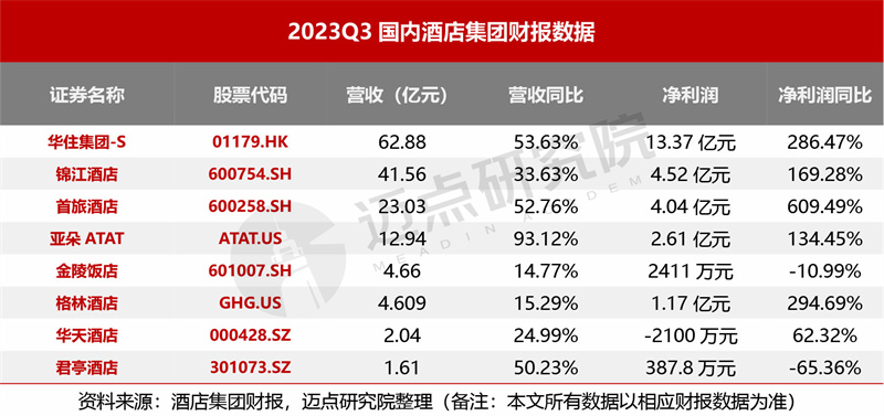 02 2023Q3国内酒店集团财报表现
