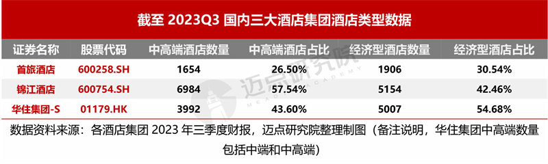 在扩大规模的同时,三季度,以首旅、锦江、华住为代表的国内酒店集团亦着力优化结构、聚焦品牌升级,中端及中高端酒店数量占比提升。