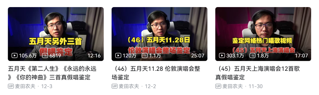 自11月30日B站up主@麦田农夫 发布鉴定假唱视频起,有关五月天假唱的相关讨论就从未停止。目前,该视频的播放量已经突破300万。视频发布后,“五月天假唱”的词条迅速升至微博热搜第一,直至今日,所有相关进展都会冲上各平台热搜,成为全民关注的事件。![]()
