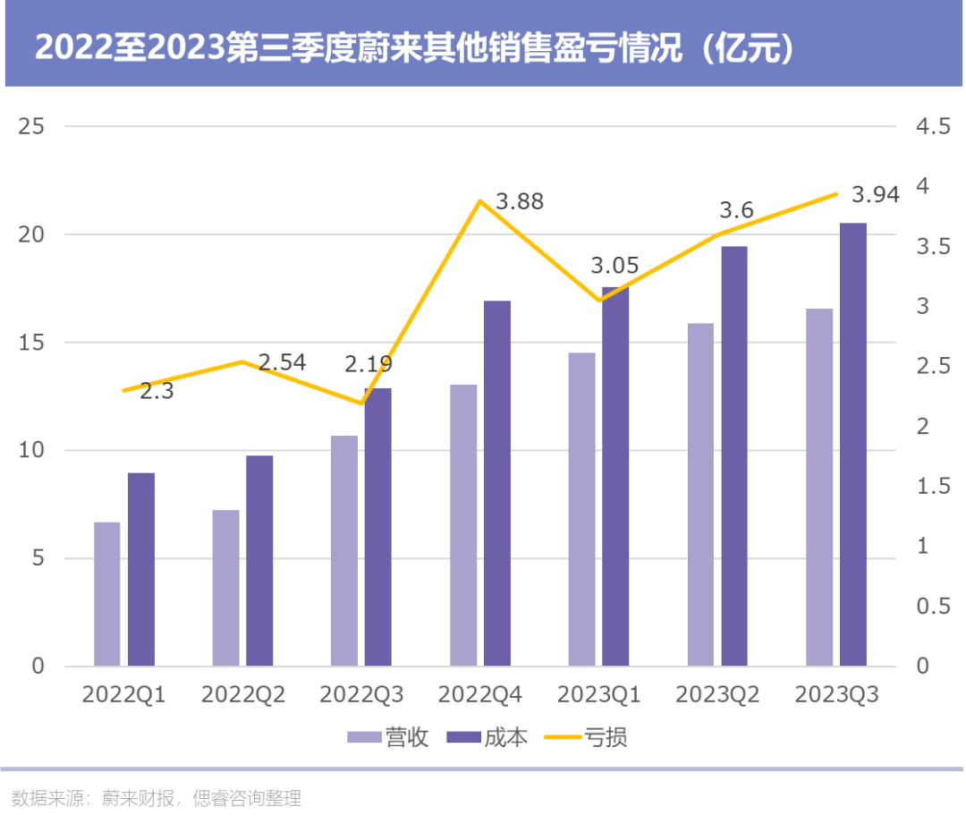 而在蔚来报表中,一直有一块“神秘内容”:其他销售,常年营收低于成本价。