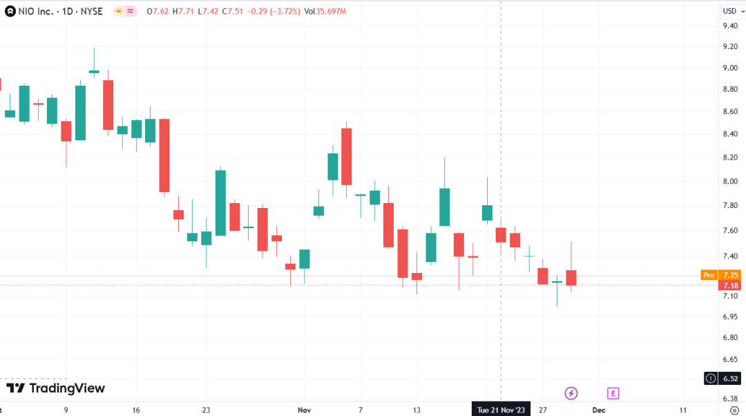 回过头来看蔚来的最近的消息,真正对基本面有着深远影响的,是蔚来成立换电联盟。但换电联盟的消息,并没有影响到股民的判断:蔚来股价自21日公布消息后持续下挫,甚至创下了11月的低点。