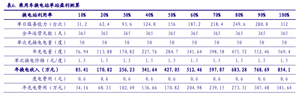(乘用车换电站单站盈利测算 数据来源:中国银河证券 )