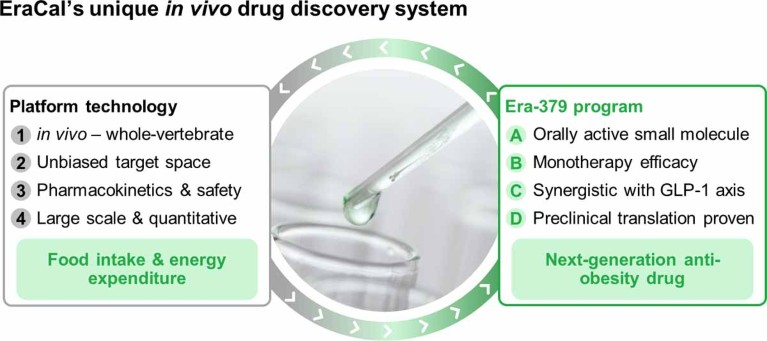 EraCal研发了一种基于斑马鱼模型的表型筛选平台,通过该平台成功开发出能够精准作用、安全调节人体食欲的抗肥胖药物。
