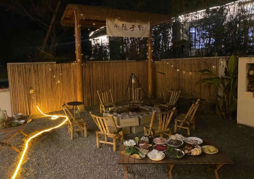 露营地、茶院就不必说了,火锅店造的景同样各式各样:有门店主打老厂房市井风;有门店则在店内打造了丛林,营造出绿野仙踪的氛围;也有门店主打新中式风格的小院,庭院内流觞曲水,好不雅致。