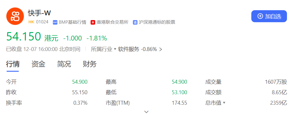截至12月7日,快手股价为54.15港元,从年初到现在,跌幅超过20%,如果与115港元的发行价相比更是严重缩水。哪怕是连续的盈利也没能提振股价,这才是真正令人担忧的事。