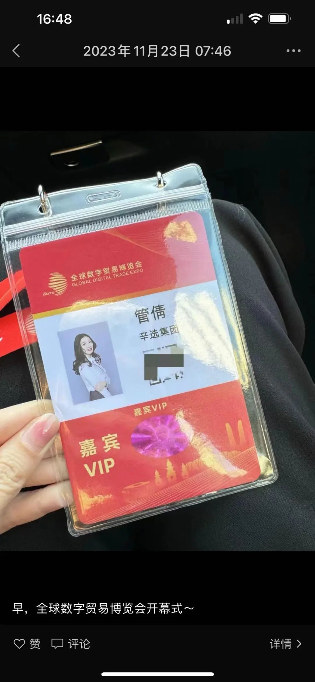 管倩的朋友圈在11月23日还发了参会的照片。
