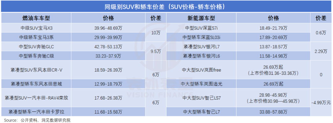 然而,纯电轿车面临的不止是空间挑战,还有SUV的价格冲击。