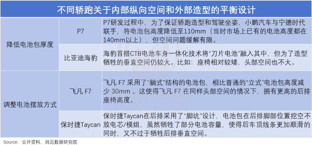 也有车企做出了实用性的创新,比如小鹏P7降低电池厚度,保时捷Taycan则从电池摆放结构上下手,但就目前效果来看,这些改动对内部纵向空间的贡献仍然有限。