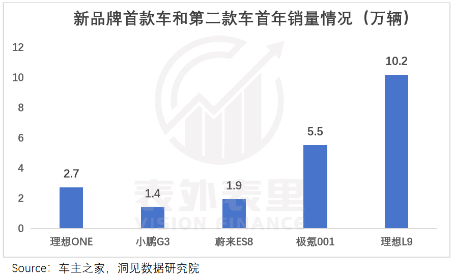 也因此,无论是蔚小理还是传统车企新能源品牌极氪,首款车的首年销量均不到6万,大规模放量,往往发生在迭代之后,如理想L9首年销量突破了10万辆。