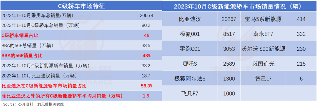 但更关键的是,哪怕加上比亚迪,C级车型整体销量占比仍不到4%,年销量在9万左右。