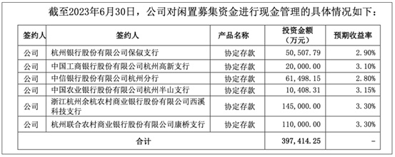 在上市的第二天,禾迈股份就发布公告称,“使用最高不超过人民币45亿元(含本数)的暂时闲置募集资金进行现金管理,用于购买安全性高、流动性好、有保本约定的投资产品(包括但不限于保本型理财产品、结构性存款、通知存款、定期存款、大额存单、协定存款等)”。