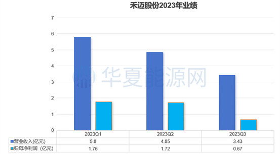 2023年第三季度,禾迈股份营收3.43亿元,同比下降18.8%,环比下降29.2%;归母净利润0.67亿元,同比下降58.2%,环比下降61.1%。