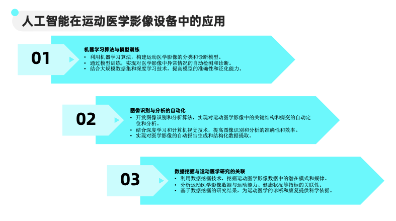 人工智能在医学领域的应用是不可避免的,并将在近期对我们的医学领域产生巨大的冲击和影响。人工智能在影像识别和自动化方面也有显著的应用,以前医生需要花费大量时间来查看肺结节的X光片,现在人工智能可以帮助处理,医生只需简要浏览即可签字,实现快速自动生成报告和结构化数据提取。同时,人工智能还可用于数据挖掘,探讨运动医学影像数据与运动能力、健康状况等指标的关联性,为诊断和康复提供更多科学依据。
