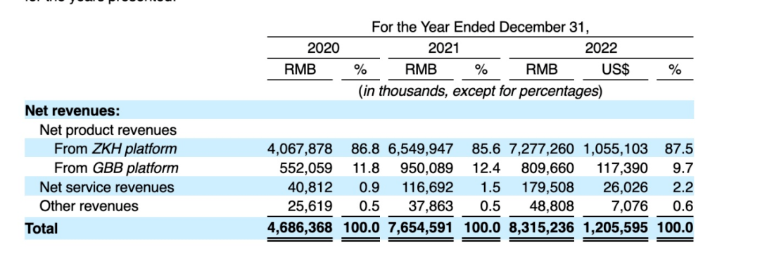 9年后,震坤行向美股提交招股书,据招股书显示,这项“隐秘”的生意在去年GMV已经达到94亿元,2023前三季度也达到79亿元。2020年到2022年,震坤行营收一路攀升,分别为46.9亿元、76.5亿元和83.2亿元,三年入账200亿元。