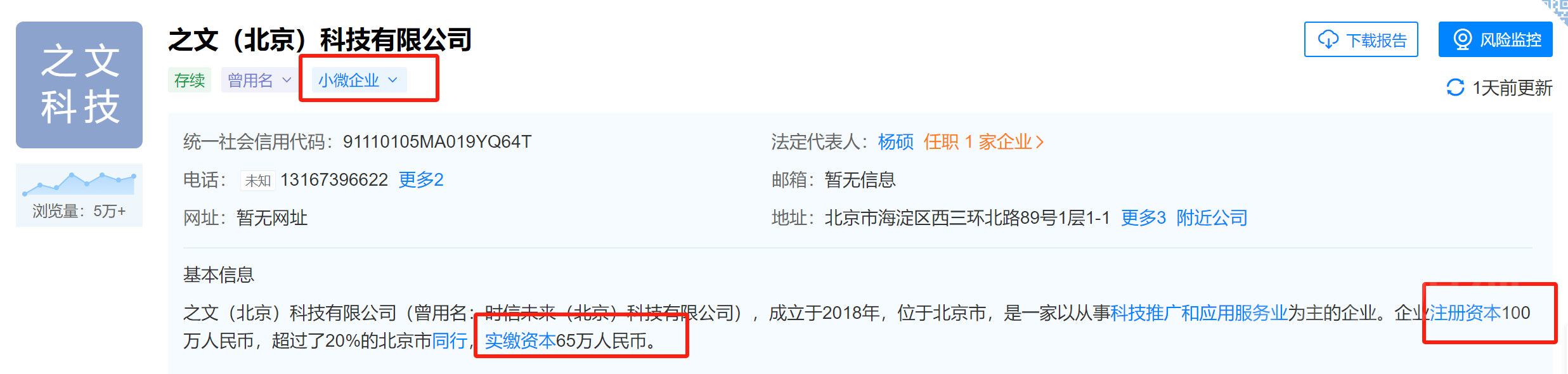其次,接盘新普互联的是之文科技(曾用名:时信未来(北京)科技有限公司)。据天眼查显示,之文科技成立于2018年,注册资本100万元,实缴资本65万元,是一家以从事科技推广和应用服务业为主的企业。值得注意的是,在本次交易前夕,11月30日,之文科技法人代表由张华更换为杨硕。