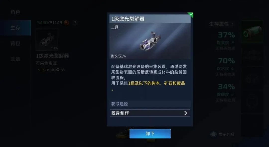 但回归到游戏上,玩家惊愕地发现,尽管自己已经有了2112年高度发展的生产技术,但面对的也是2112年高度恶化的星球环境。所以,玩家哪怕不用再传统地斧头抡大树,也需要用“激光裂解器”来采集木材。斧头的耐久,也变成了激光裂解器的电力。