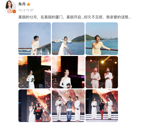 曾数次在颁奖典礼中念错名字的朱丹,一度陷进了群嘲的怪圈。如今通过与周一围合体上《爱的修学旅行》,不仅洗刷了大众之于夫妻二人的刻板印象,更是凭借一段在车上对独库公路的介绍展示了其作为主持人的实力,并为重新拿起话筒当主持人提供了可能。近日,朱丹便在微博上分享了在厦门主持品牌活动的行程,对话筒直言“久违了”。![]()