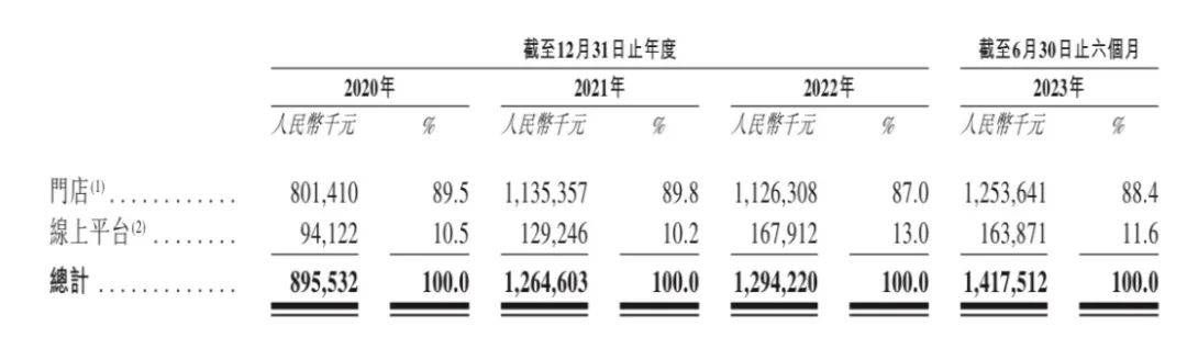 和其他黄金珠宝品牌相比,老铺黄金显然缺乏相应的举措。这也导致老铺黄金在线上渠道的声量不如其他品牌,营收也相对较少。据招股书披露,2020年至2023年上半年,老铺黄金88%以上的收入来自线下渠道,线上渠道带来的营收贡献长期低于12%。